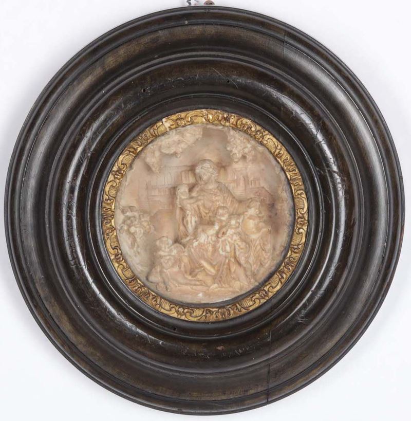 Coppia di bassorilievi in stucco monocromo raffiguranti Madonna con Bambino e Agar e l’Angelo, Austria XIX secolo