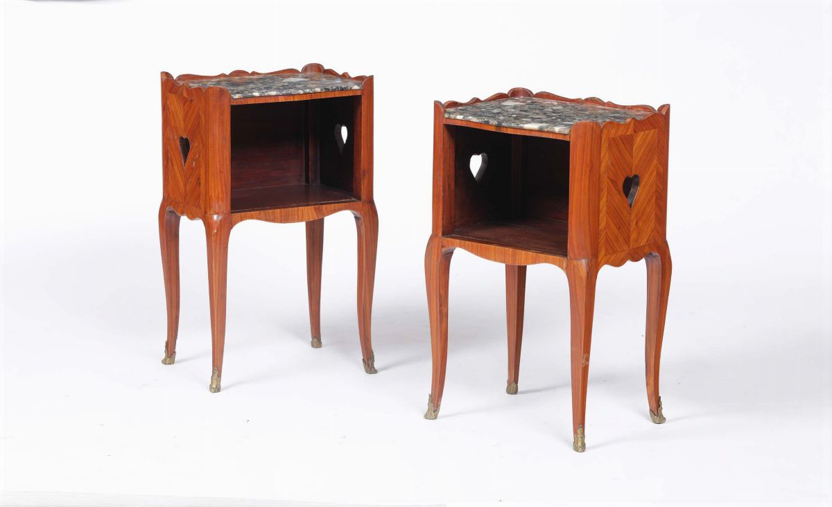 Coppia di comodini lastronati in bois de rose, Francia XIX secolo