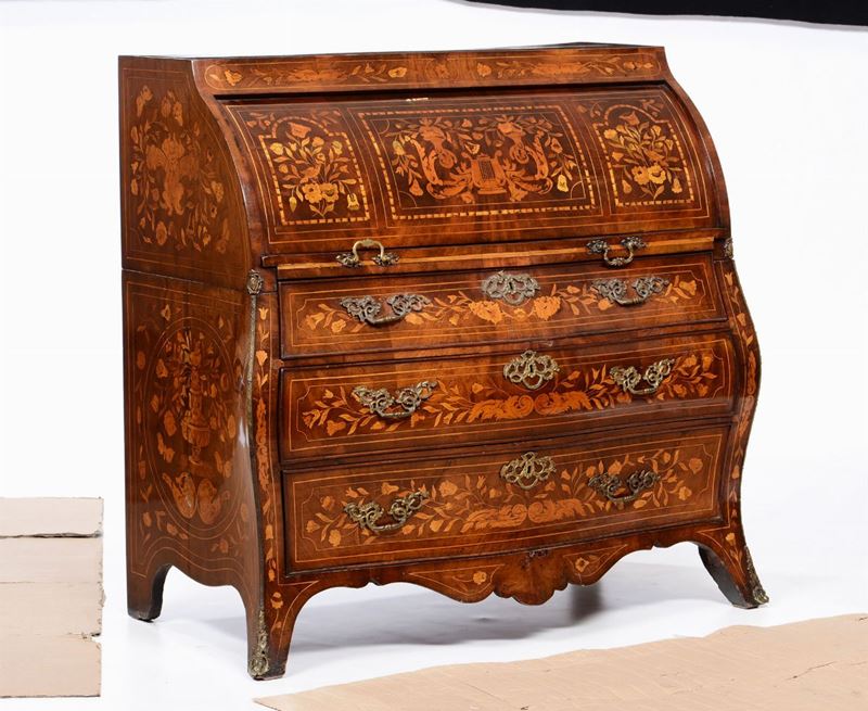 Ribalta a rullo intarsiata con legno di frutto, Olanda XVIII-XIX secolo