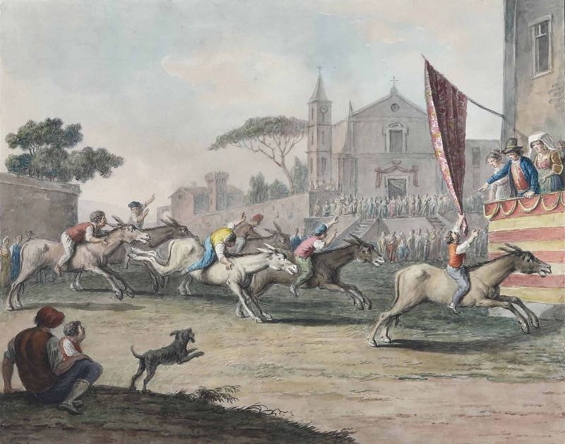 Saverio della Gatta (1758 - 1828) Costume di portare il vino nuovo in città, 1823 La corsa degli asini, 1823