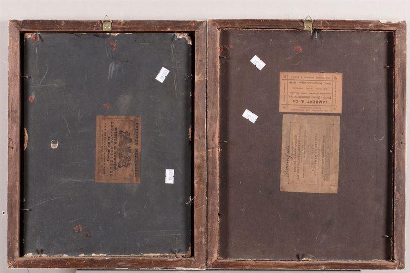coppia di dipinti ad olio su rame, cm 26x34