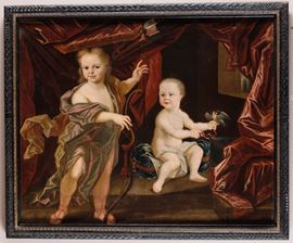 Scuola italiana del XVIII secolo Ritratto di bambini con frecce e faretra