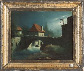 Scuola italiana inizio XIX secolo Paesaggio notturno