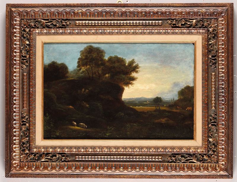 Scuola olandese del XVII secolo Paesaggio con animali al pascolo