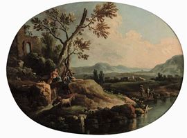 Scuola veneta del XVIII secolo Paesaggio con architetture e figure