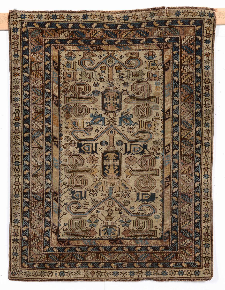 fondo chiaro con motivi beige ed azzurri, cm 155x117