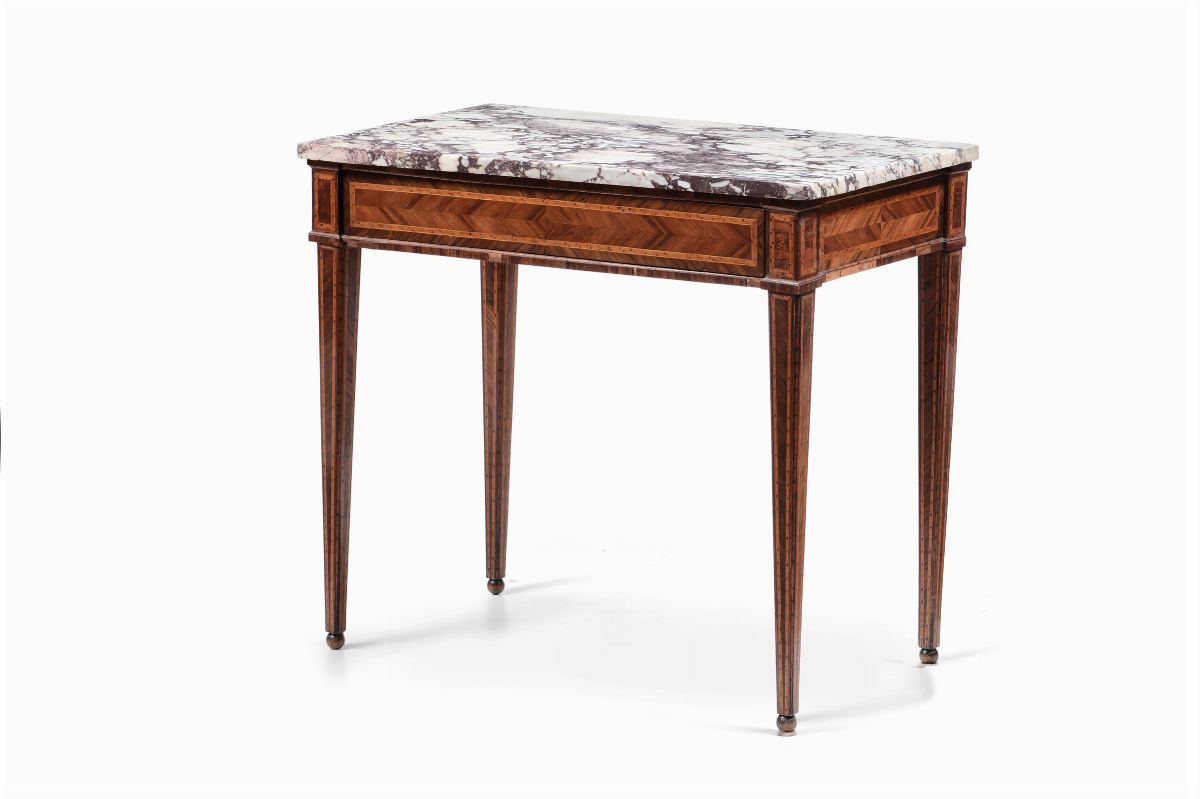 Tavolino in legno lastronato ed intarsiato, ebanisteria italiana del XVIII-XIX secolo