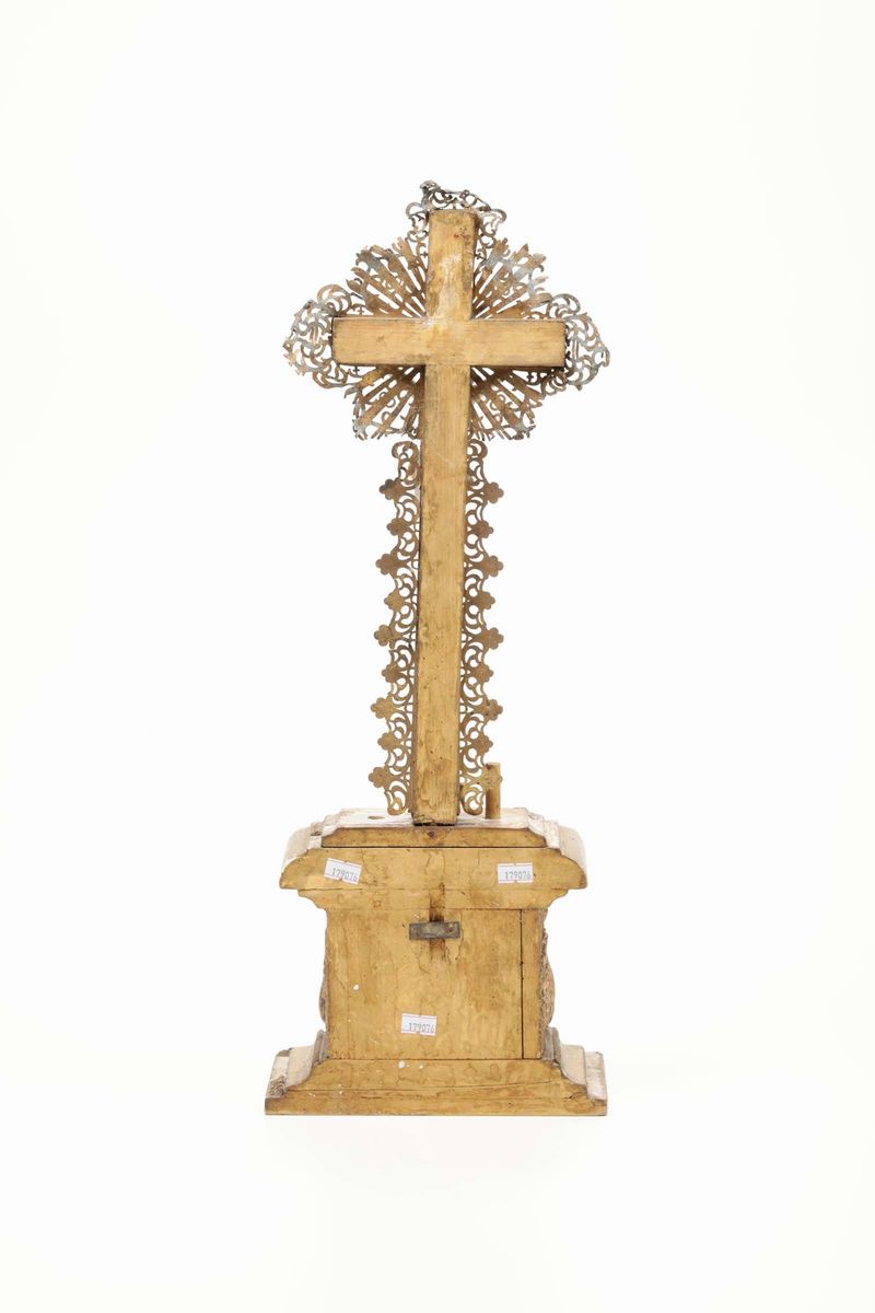 Crocifisso in legno intagliato, dorato e dipinto, XIX secolo
