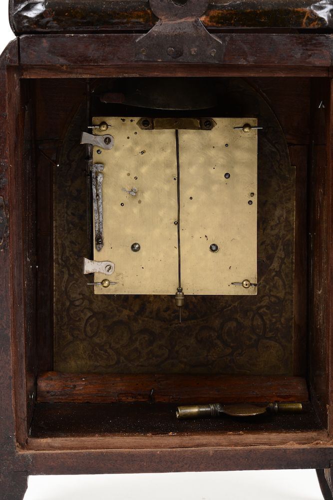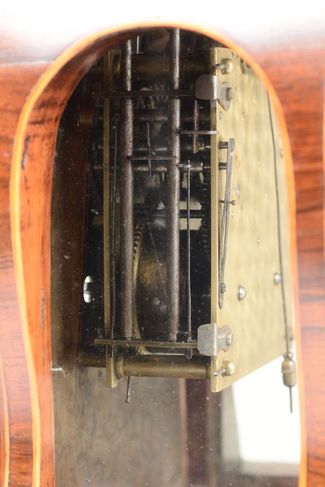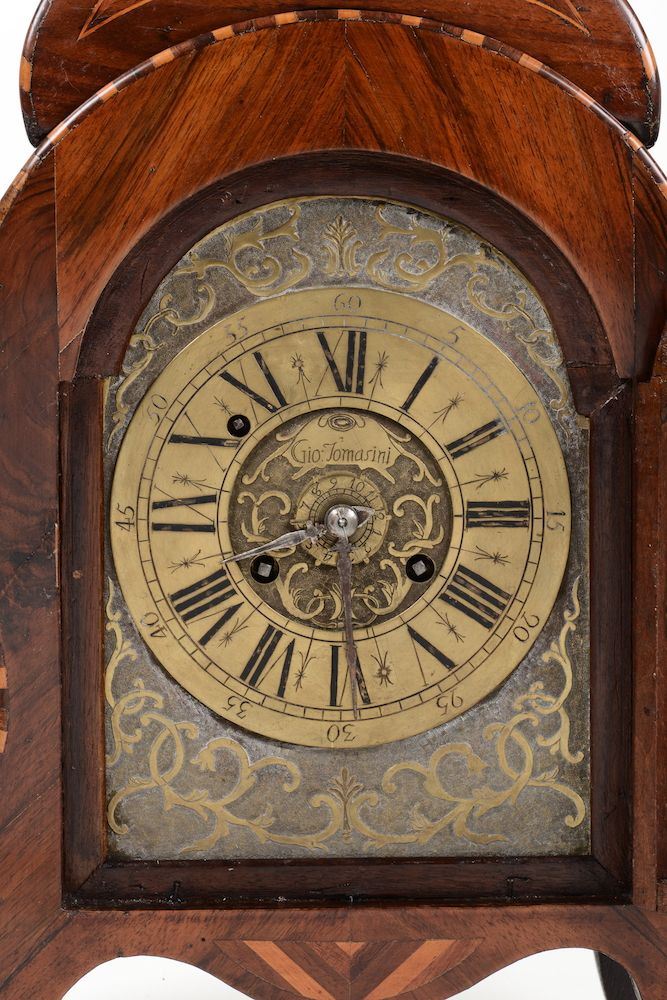 Orologio tipo Carlo X con cassa lastronata ed intarsiata, XIX secolo