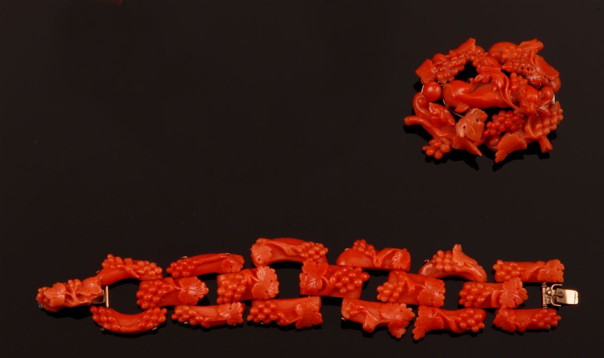 Lotto composto da spilla e bracciale in corallo