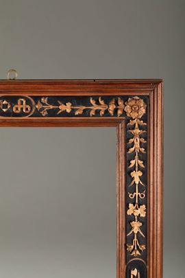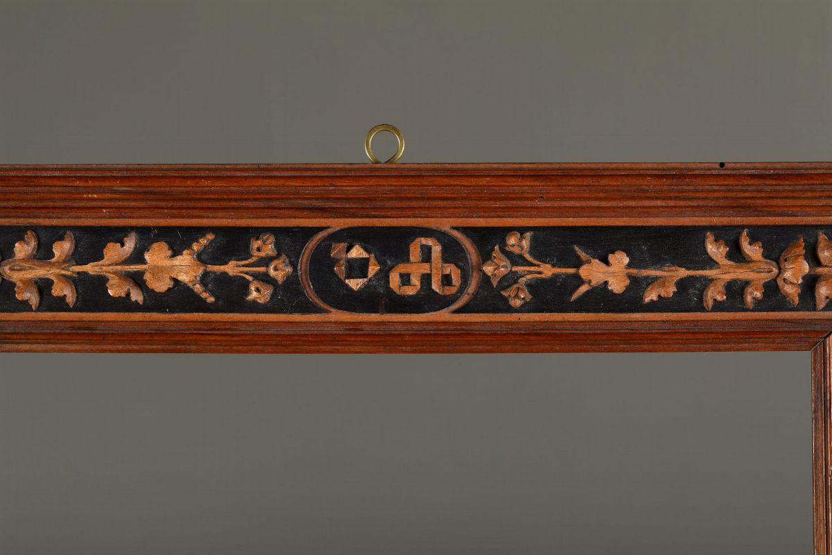 Raffinate cornici decorate a micro intaglio con motivi vegetali analoghi all'opera qui presentata sono documentate nella ricca e fortunata produzione neoclassica dell'ebanista piemontese Giuseppe Maria Bonzanigo (Asti 1745 - Torino 1820)