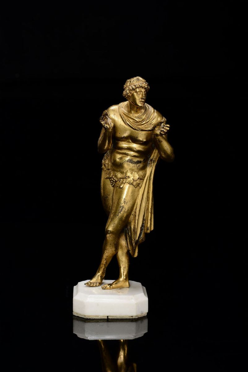 Figura bucolica (suonatore di siringa?) in bronzo fuso, cesellato e dorato. Fonditore neoclassico italiano, Roma (?), fine del XVIII secolo