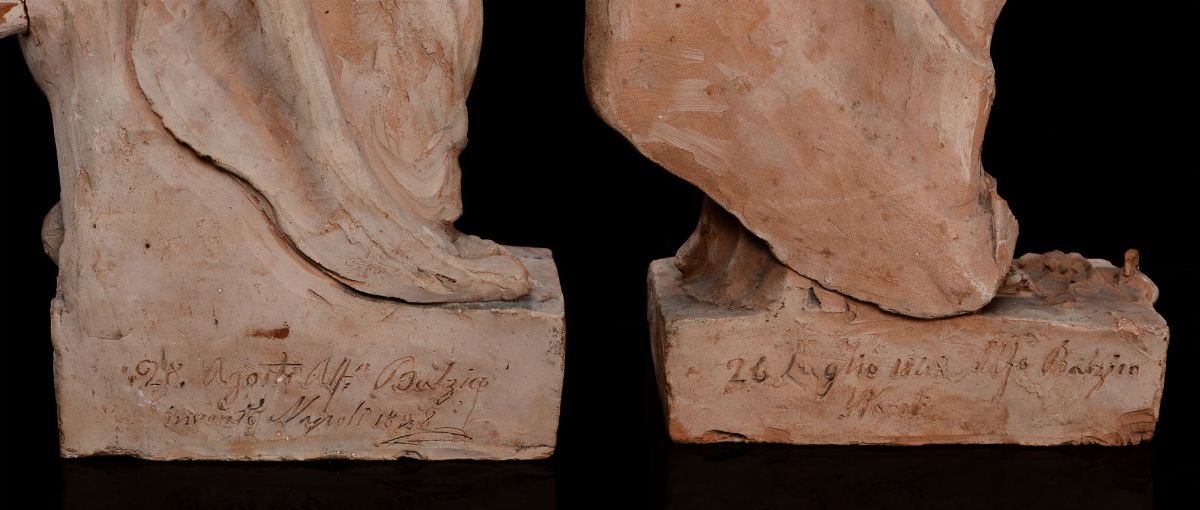 Gruppo di bozzetti in terracotta raffiguranti i quattro evangelisti, firmati Alfonso Balzico (Cava dei tirreni 1825-Roma 1901), Napoli 1848