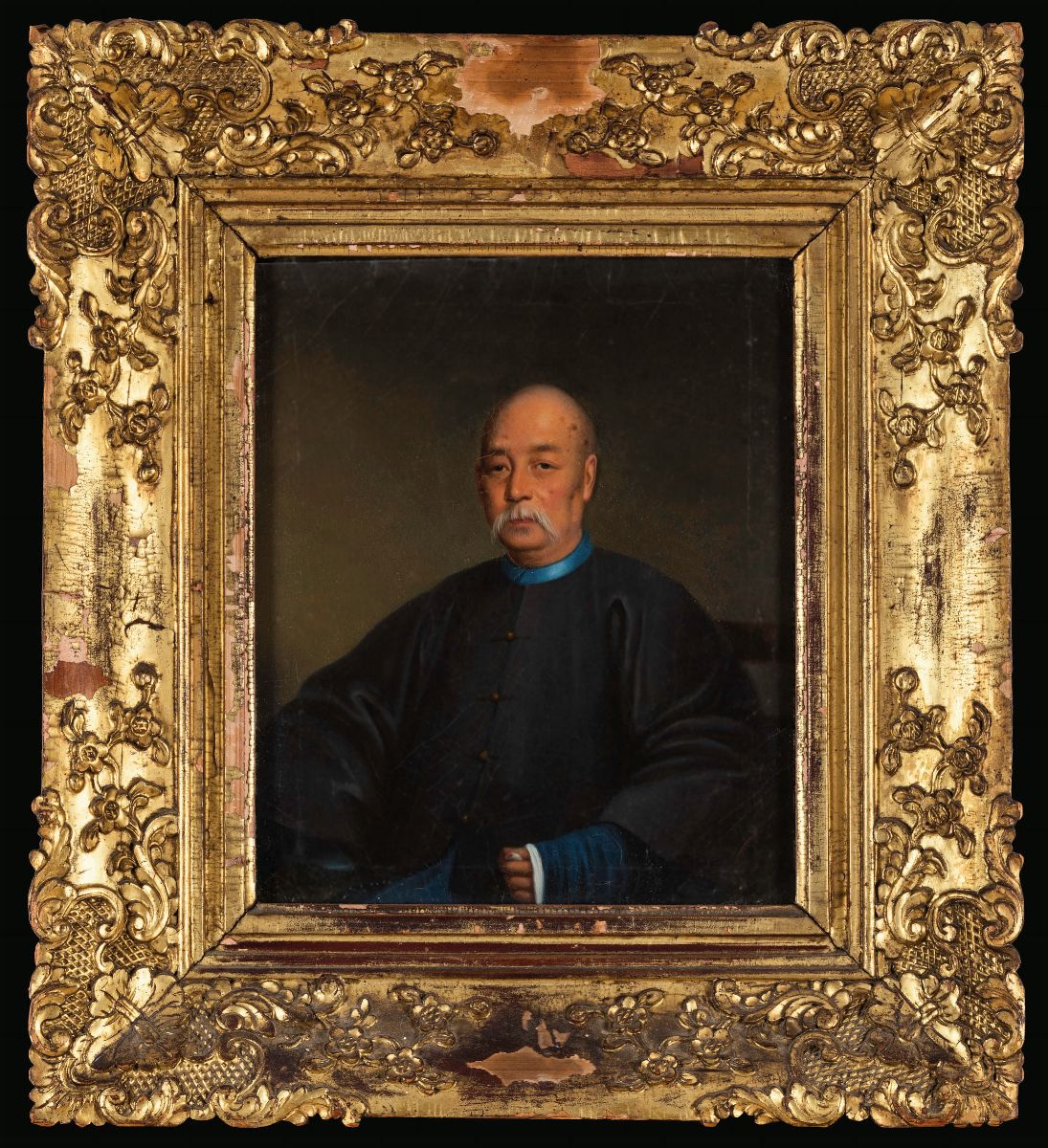 Dipinto su tela raffigurante ritratto di mandarino, scuola cinese del XIX secolo