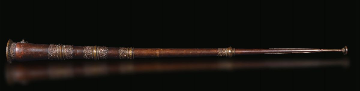 Tromba cerimoniale in bronzo con decoro a rilievo, Tibet, XIX secolo