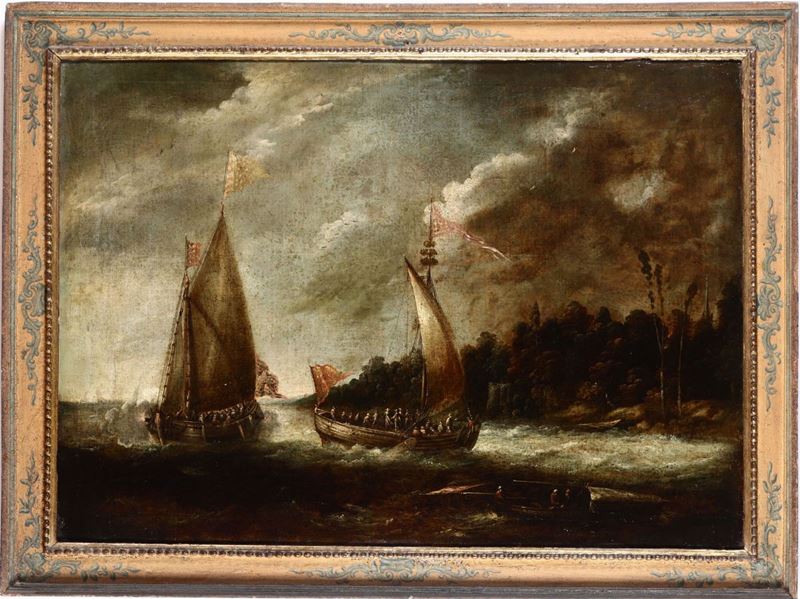 Artista fiammingo operante a Genova nel XVII secolo Marine con velieri