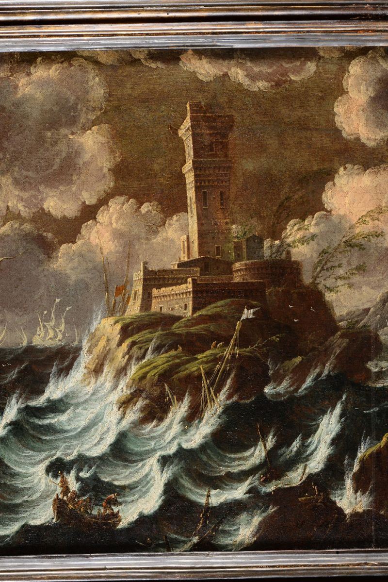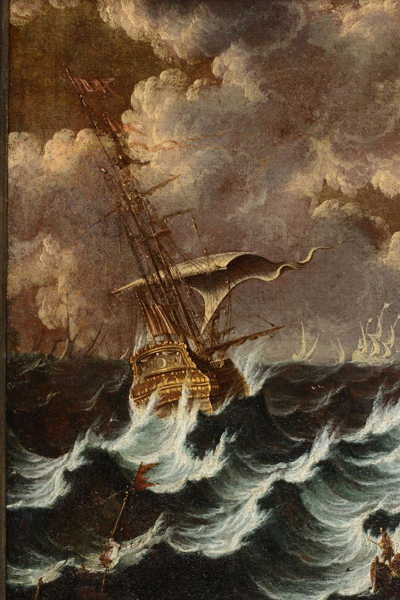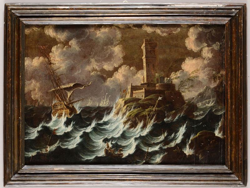 Pieter Mulier detto il Tempesta (Haarlem 1637 - Milano 1701), cerchia di Naufragio con imbarcazioni