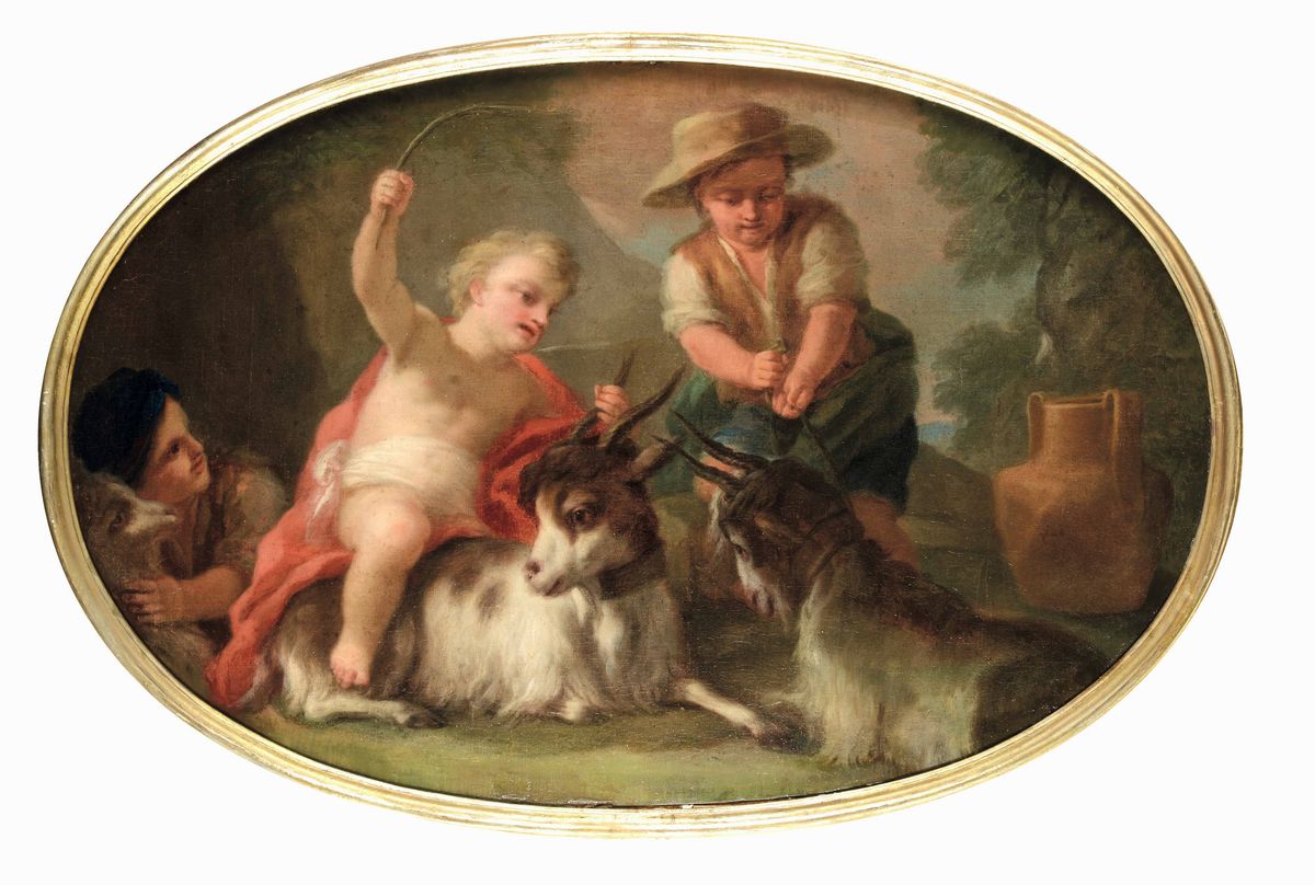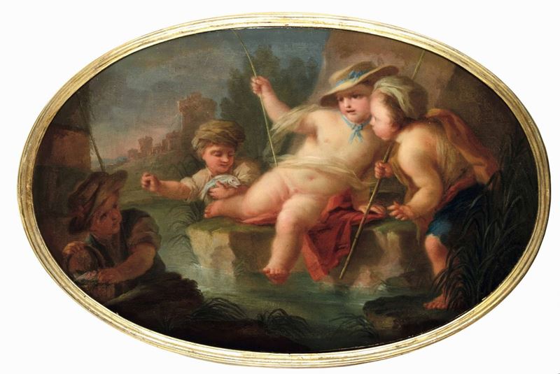 [...] la moda di affidare al tema dell'infanzia il compito di incarnare allegorie rinascimentali e barocche trova le sue radici nel mondo artistico francese, e in ambito settecentesco va credibilmente attribuita al successo delle invenzioni di Francois Boucher in questo campo, ampiamente diffuse da stape. é infatti possibile che uno spunto per questa serie di Bardellino sia stato rappresentato dalla serie dei Quattro elementi di Boucher (1744), nota da originali, da copie antiche e da stampe. Le tipologie dei bimbi e la loro impaginazione nello spazio degli ovali mostrano l'attaccamento di Bardellino ai prototipi del suo maestro Francesco De Mura [...] Ma, al tempo stesso, è altrettanto evidente l'accuratezza con cui Bardellino sfuma i contorni delle figure. La forse stilizzazione in tal senso del suo linguaggio, la ricerca di tonalità cromatiche tanto lievi da conseguire effetti di colore pastello e la riduzione drastica dei contrasti di chiaroscuro mostrano l'influenza della pittura di area germanica su Bardellino, e in generale su molti pittori napoletani attivi a contatto con la corte borbonica. Se certamente deve essere stata molto forte l'influenza di opere francesi anche sull'evoluzione stilistica di Bardellino, sono le opere di Heinrich Friedrich Fuger, di Angelica Kauffmann, di Johann Heinrich Wilhelm Tischbein ad aver giocato un ruolo fondamentale in questa sua svolta. Per tali ragioni la datazione della serie degli Elementi va situata nella fase matura dell'attività di Bardellino, probabilmente tra il 1780 e il 1790. (R.L.) Bibl.: Ivanoff, Wildenstein 1980 Tratto da: Casa di Re, un secolo di storia alla Reggia di Caserta 1752-1860, ed. Skira, a cura di Rosanna Cioffi, 2004