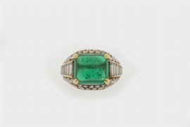Bulgari. Anello Trombino con smeraldo Colombia di ct 6,86 taglio cabochon e diamanti