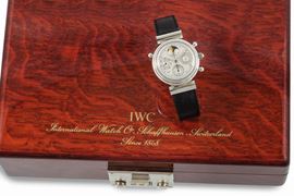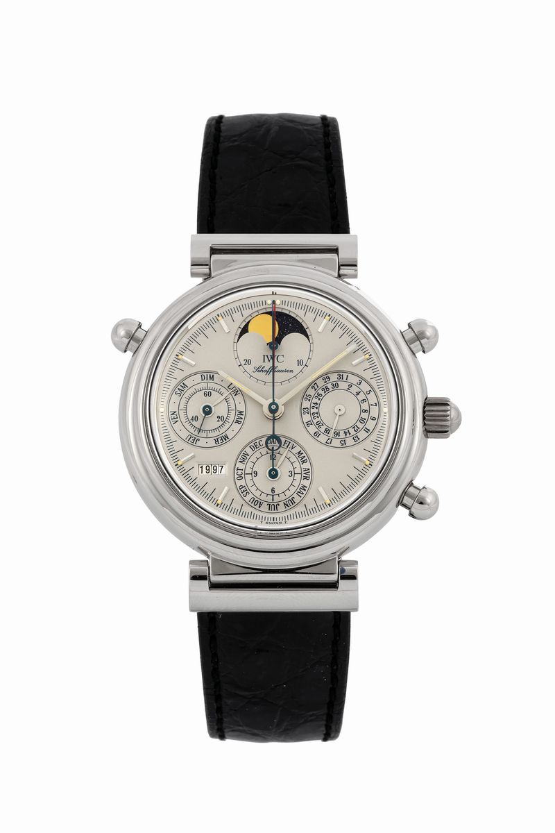 IWC, International Watch Co., Schaffhausen, Da Vinci Jubilee Rattrapante, No. 232/500, Ref. 3751-003. Realizzato in una edizione limitata di soli 500 pezzi per celebrare il decimo anniversario del Da Vinci. Accompagnato da scatola, Garanzia, libretti, istruzioni. Realizzato nel 1990 circa