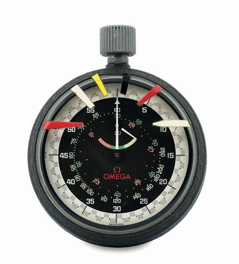 OMEGA. Set di due orologi cronometri sportivi. Accompagnati da scatola originale. Realizzati nel 1960 circa