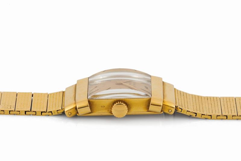 PATEK PHILIPPE, Genève, TOP HAT, No. 976847, cassa No. 688597, Ref. 1450. Raro, orologio da polso, di forma rettangolare, in oro giallo 18K con bracciale in oro Gay Freres con incisa data di produzione: 4.57 . Realizzato nel 1950 circa