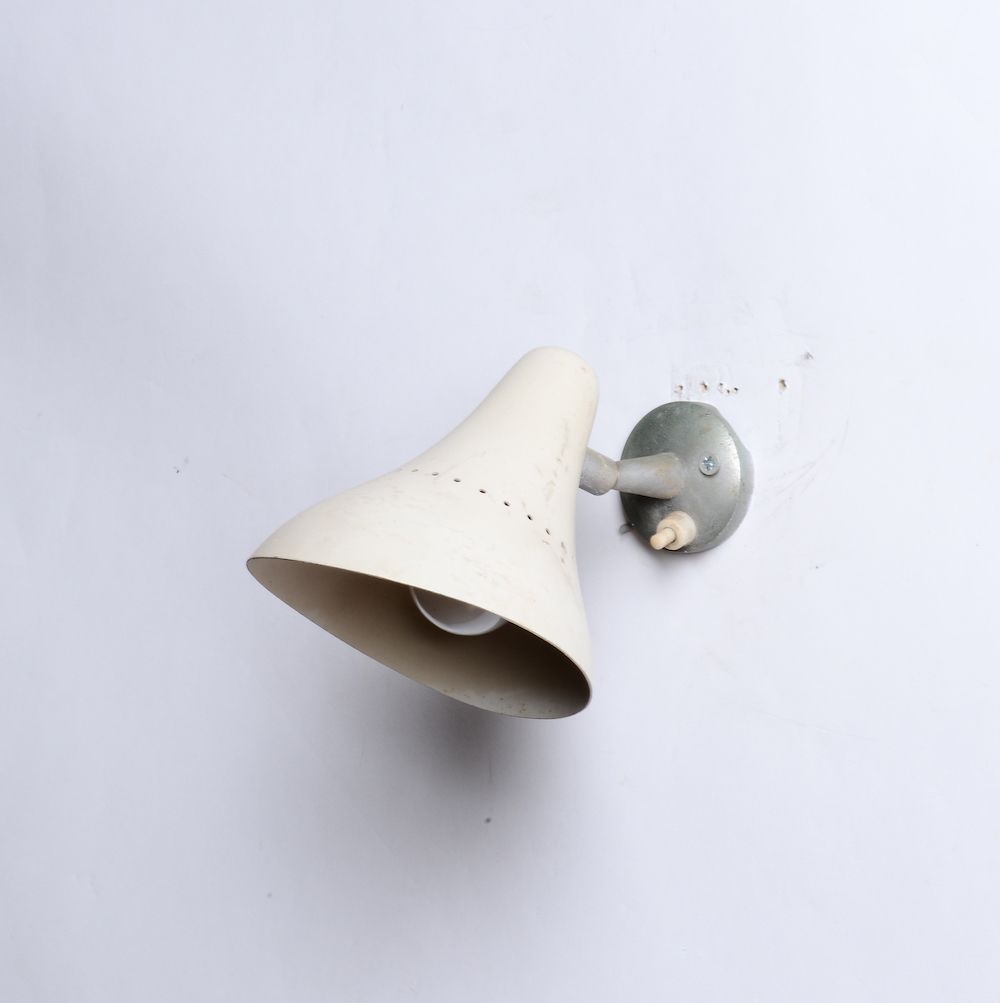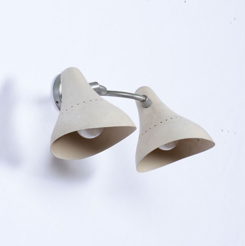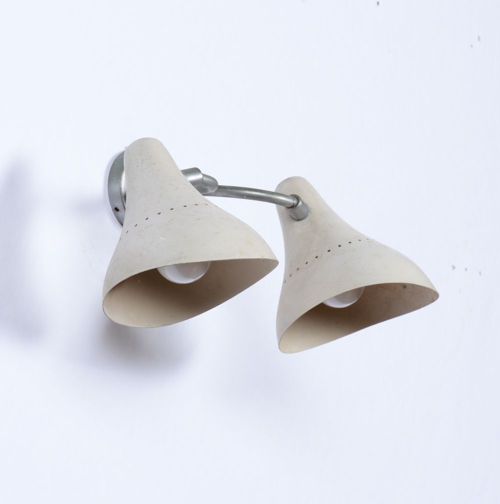 Tre lampade da muro con struttura in metallo e diffusori in alluminio laccato.