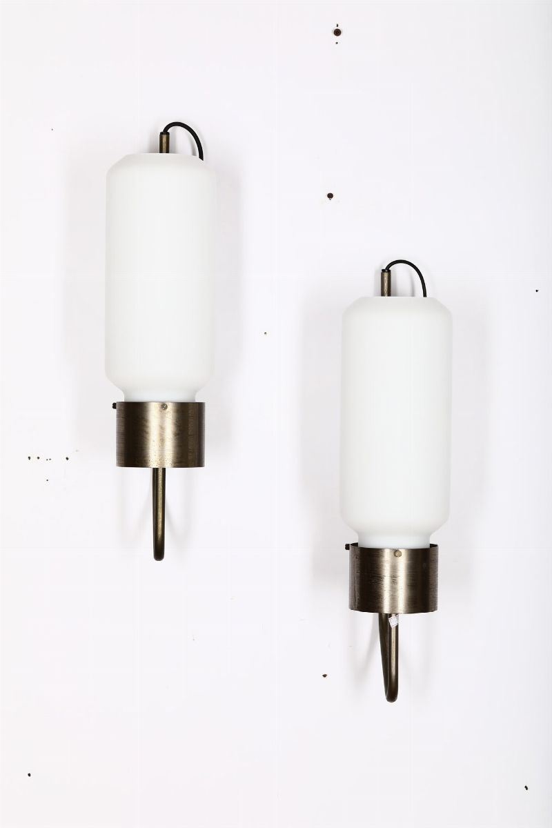 Coppia di appliques LP10 in ottone e vetro smerigliato.