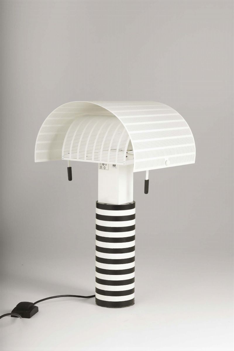 Lampada da tavolo Shogun con struttura in metallo laccato ed alluminio laccato traforato.