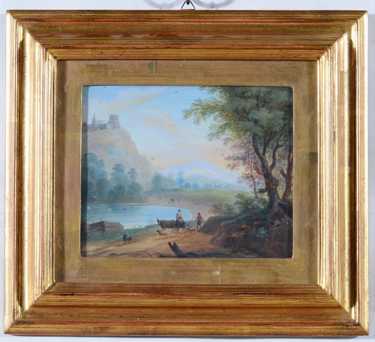 Anonimo dell’inizio XIX secolo Coppia di paesaggi lacustri con figure