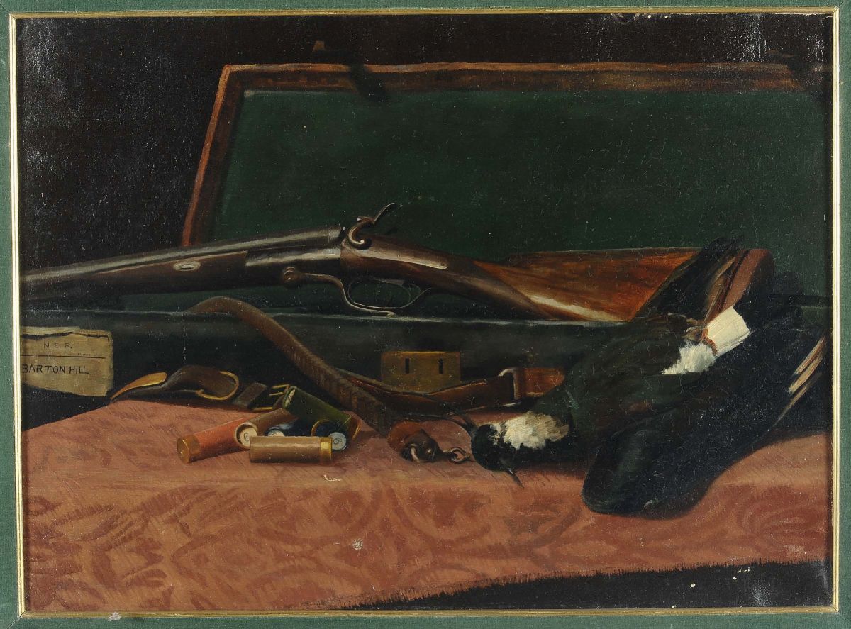 Scuola Inglese del XIX secolo Natura morta con cacciagione e fucile