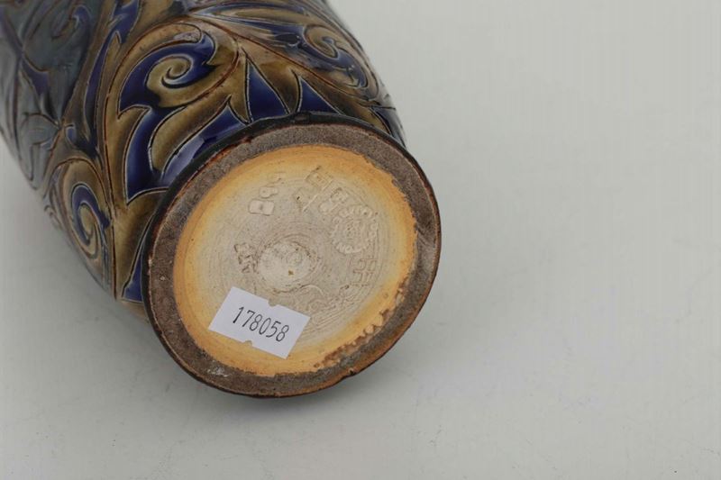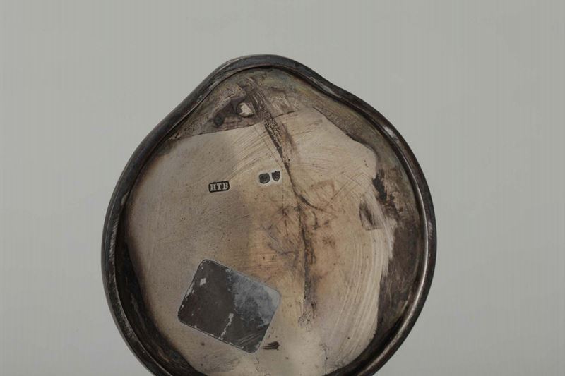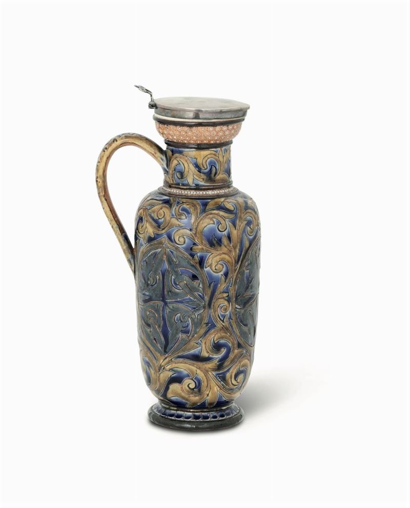 Corpo in ceramica graffita a motivi floreali e coperchio in argento