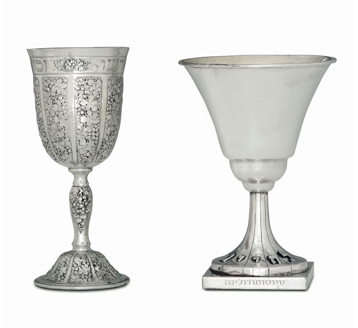 Coppa del Kiddusch in argento fuso, sbalzato e cesellato. apparentemente privo di bolli. Germania XIX-XX secolo