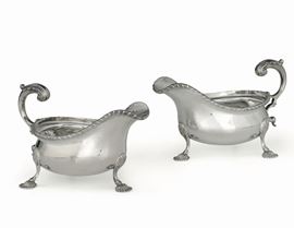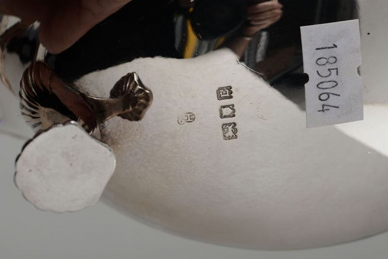Coppia di salsiere in argento fuso, sbalzato e cesellato. Londra 1918, argentiere non identificato