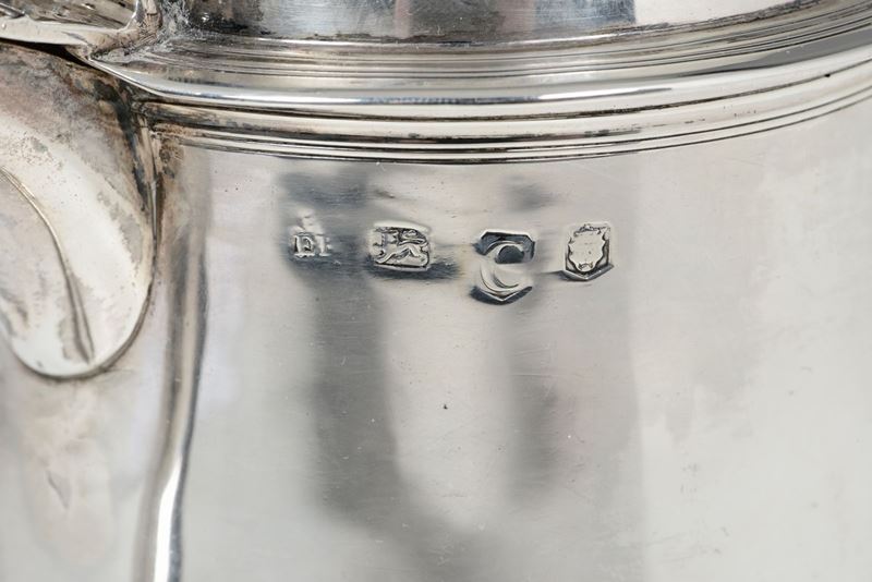 (Quello a sinistra della foto di misura più piccola) Bolli della città di Londra 1722. Argentiere Edmund Pearce (Quello più grande) Bolli consunti di difficile lettura, probabilmente Edimburgo seconda metà del XVIII secolo
