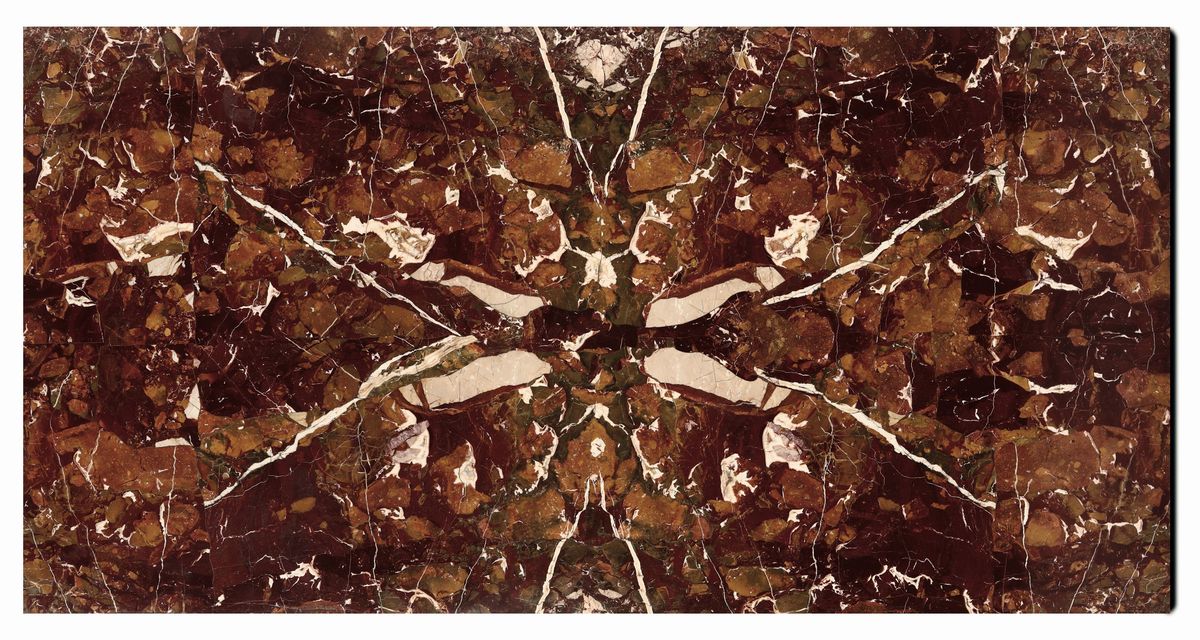 tre cassetti sul fronte decorati con elementi fogliacei e figure, cassetto superiore decorato con uccelli affrontati e cornucopie, gambe troncopiramidali, piano in marmo giallo, cm 122x62x89