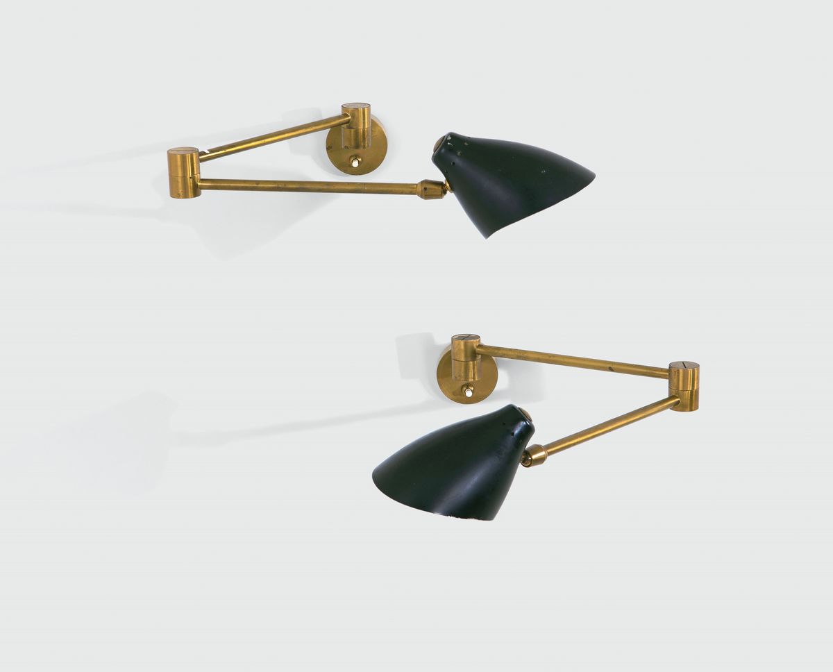 Coppia di appliques in ottone con diffusore in alluminio laccato.