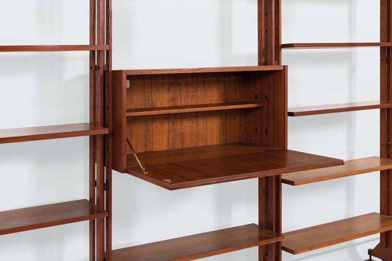 Libreria LB10 con struttura in legno e dettagli in metallo.