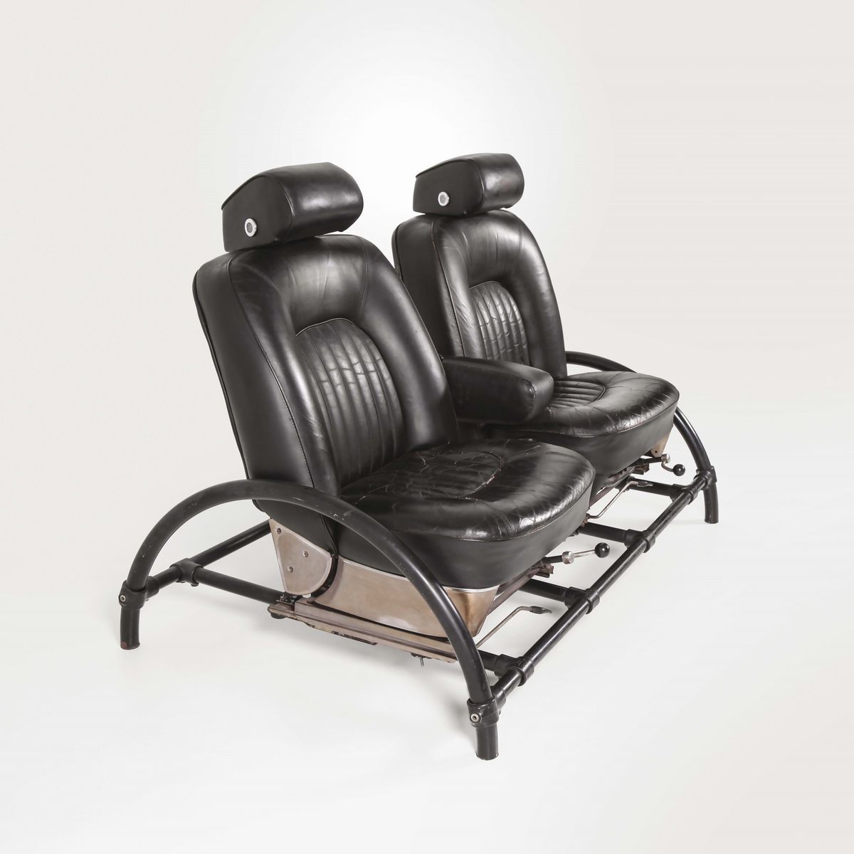 Divano Rover con struttura in metallo laccato e rivestimenti in pelle. Piccola serie di 300 pezzi. Prod. OneOff ltd, UK, 1980 ca. cm 151x105x86