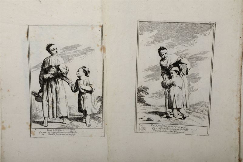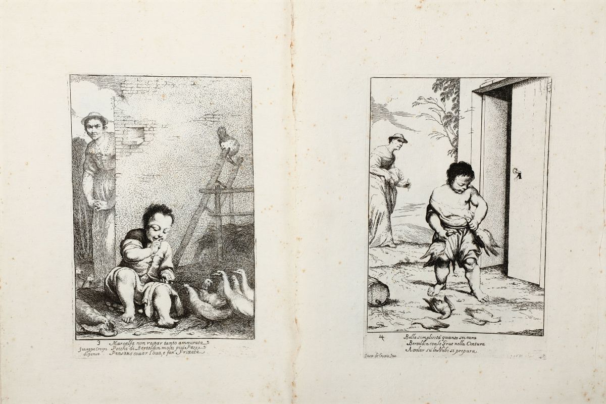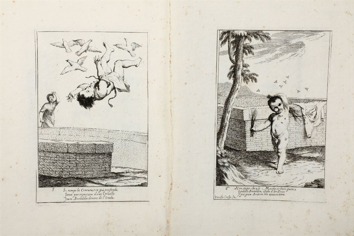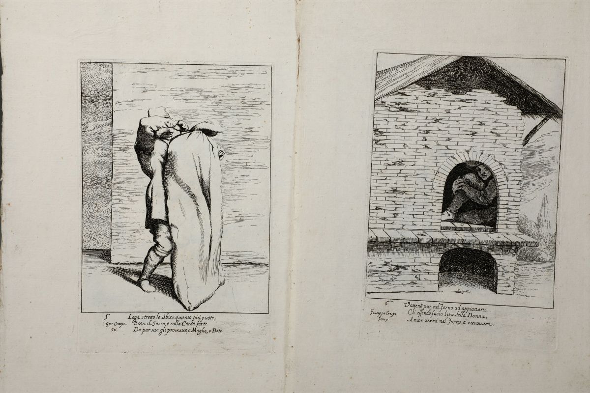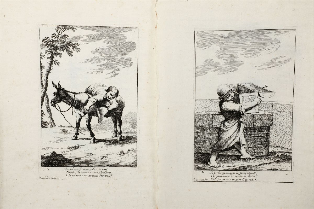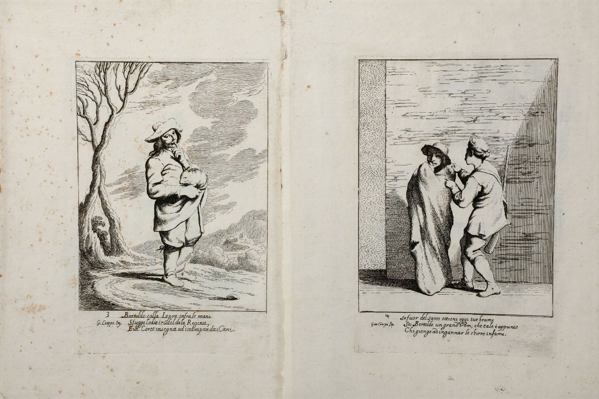 Serie delle venti incisioni a illustrare Bertoldo Bertoldino e Cacasenno, stampato a Bologna da Lelio della Volpe nel 1736.