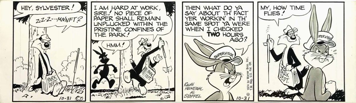 Striscia giornaliera edita il 31 ottobre 1974. Matita, china su carta con retino ad acqua, cm 54x15.