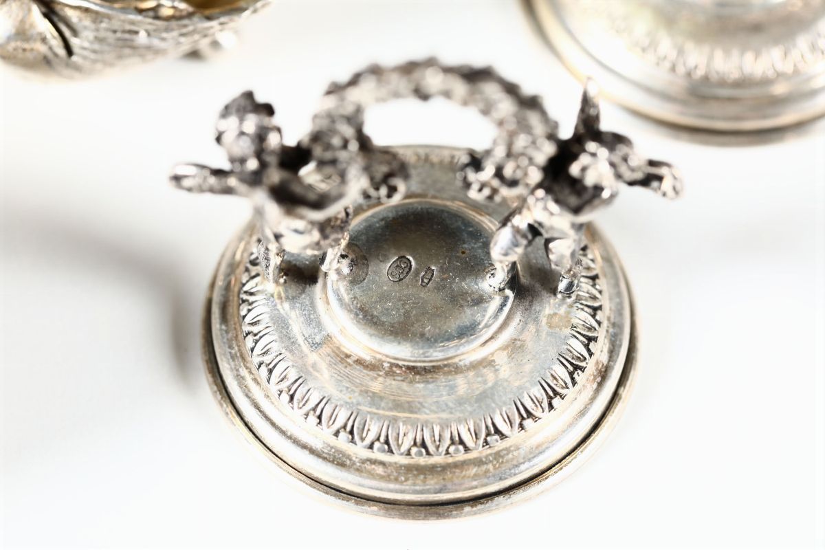Insieme di 10 segnaposto con putti che sorreggono festoni Manifattura Italiana del XX secolo