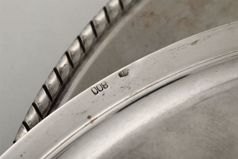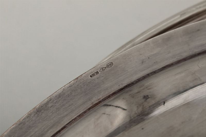 Insieme di sei vassoi circolari in argento, manifatture italiane del XX secolo