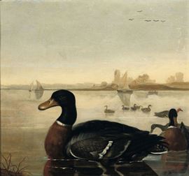 Aelbert Cuyp (1620 - 1691) Anatra selvatica sul fiume