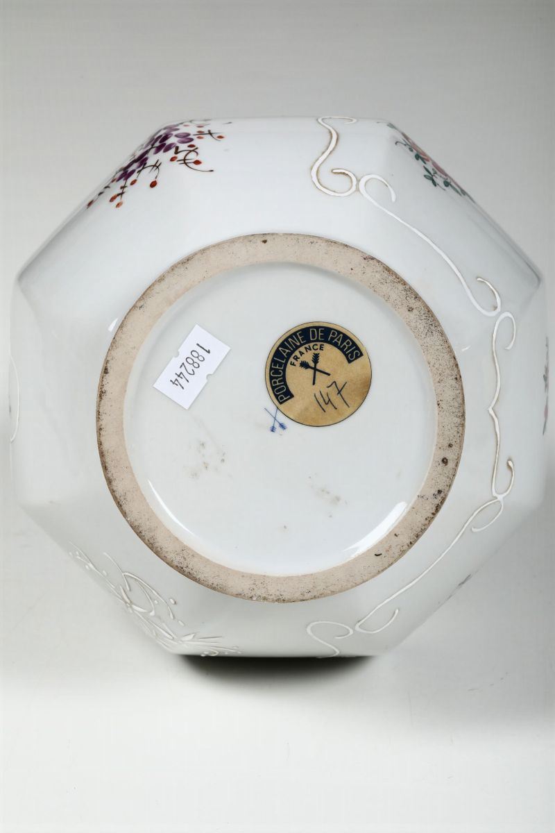 Porcellana. Marca: due frecce incrociate in blu; etichetta cartacea “Porcelaine de Paris France”. Altezza cm 32. Buono stato di conservazione