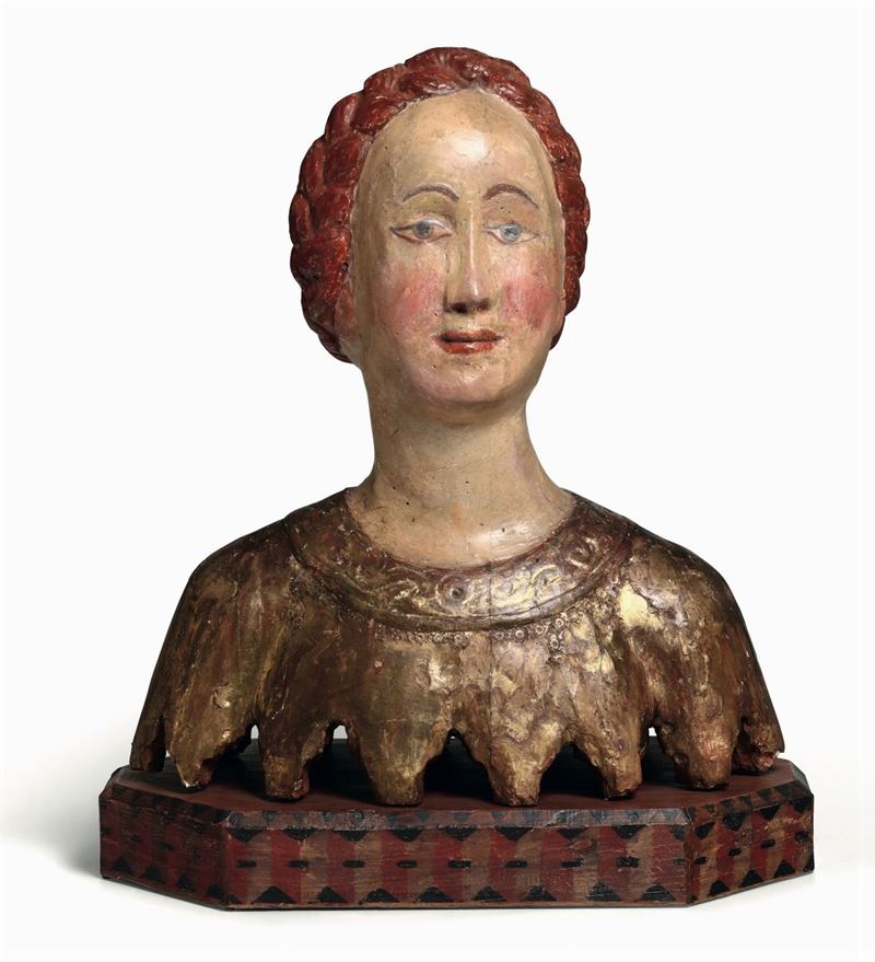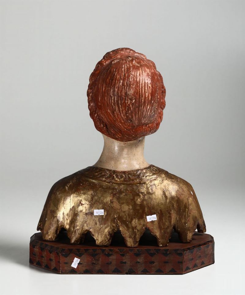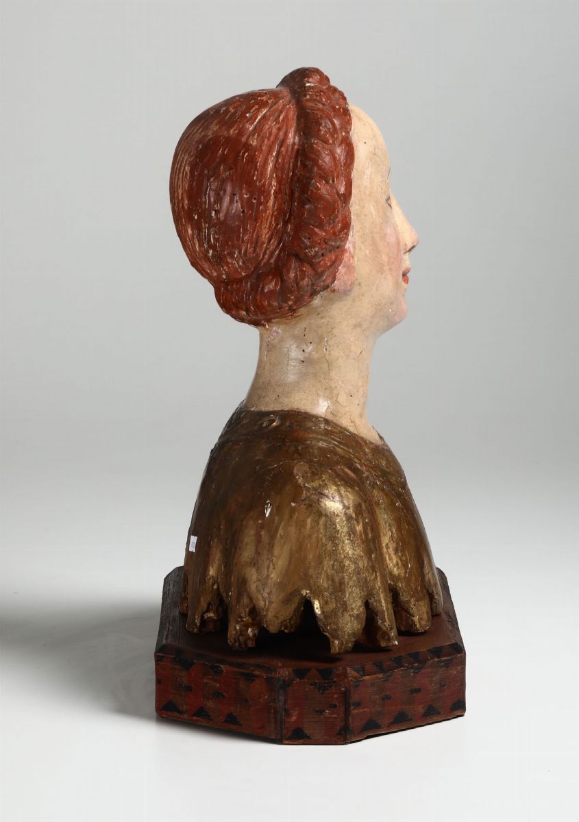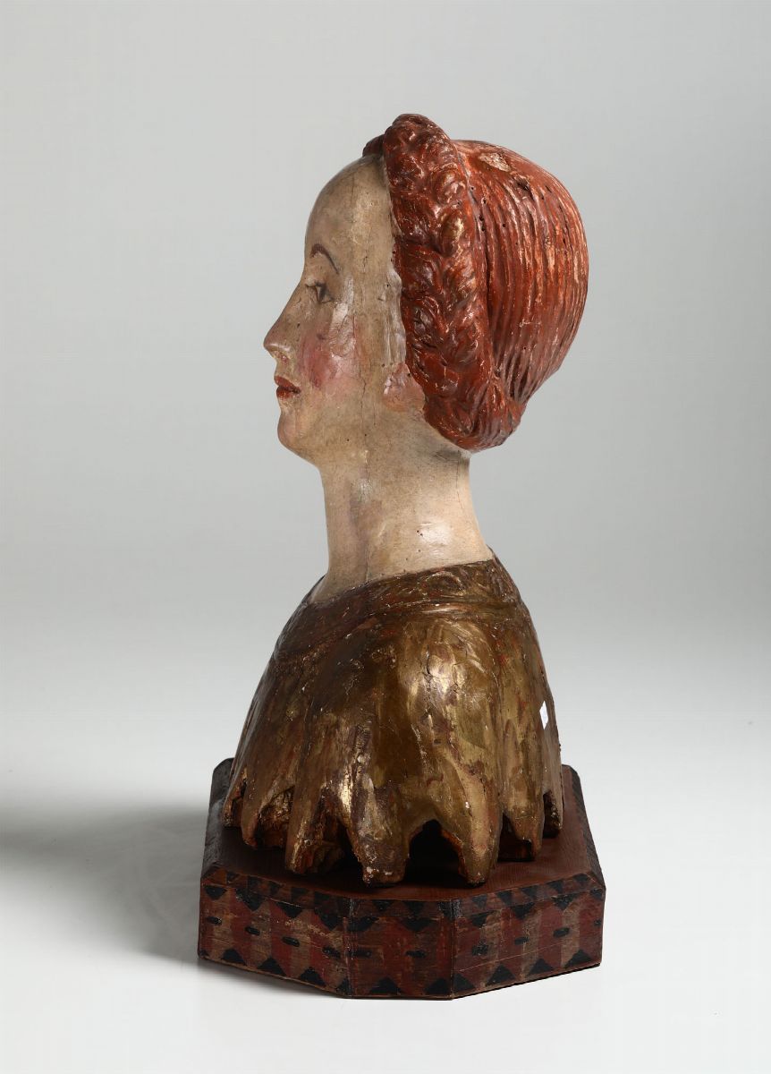 Busto femminile in legno policromo e dorato in stile rinascimentale del XV-XVI secolo