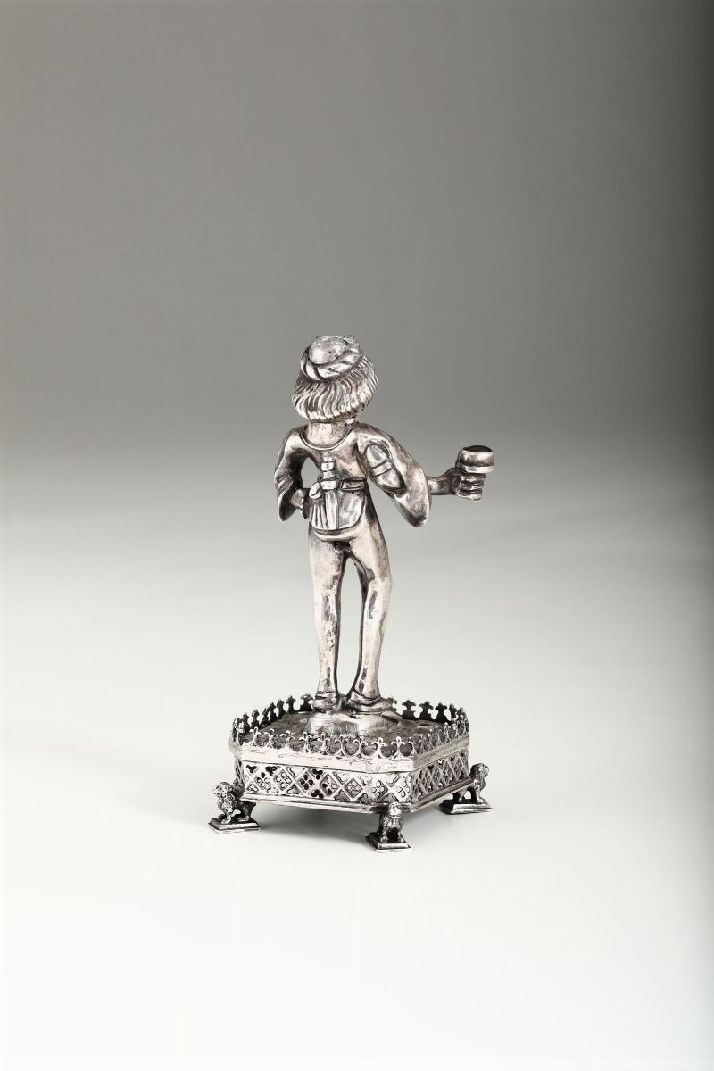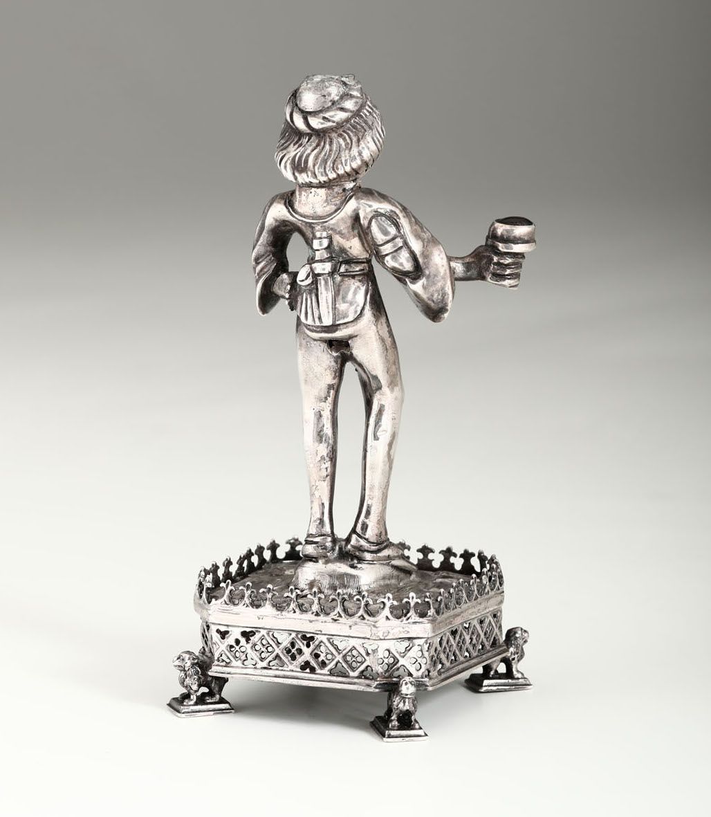 Candeliere in argento fuso e cesellato raffigurante paggio con coppa, manifattura d’oltralpe del XIX-XX secolo (apparentemente [..]