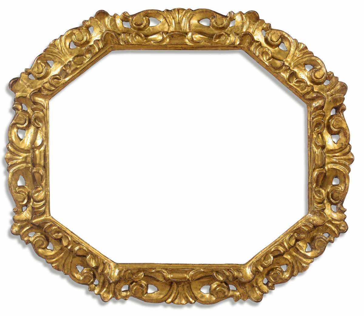 Coppia di cornici ottagonali intagliate ed interamente dorate, Toscana XVIII secolo