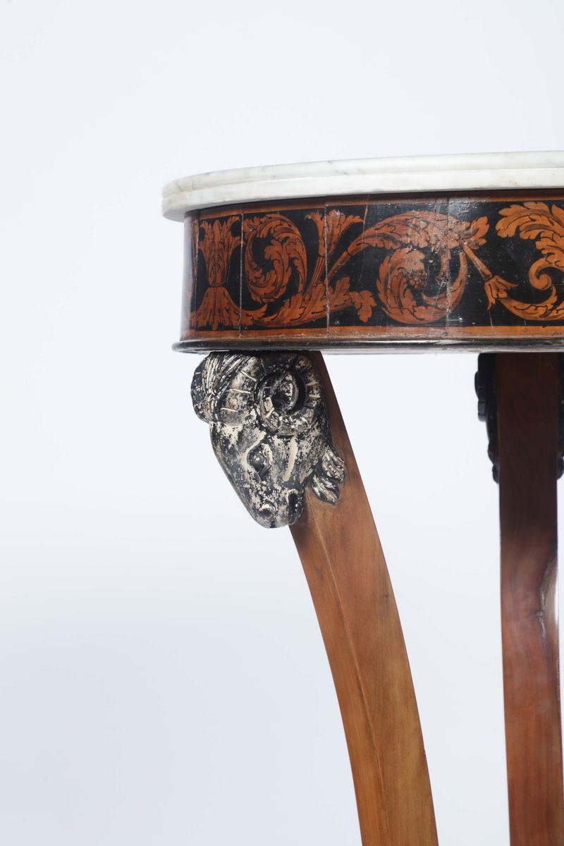 Coppia di gueridon in ciliegio con intarsi in varie essenze, Toscana XIX secolo