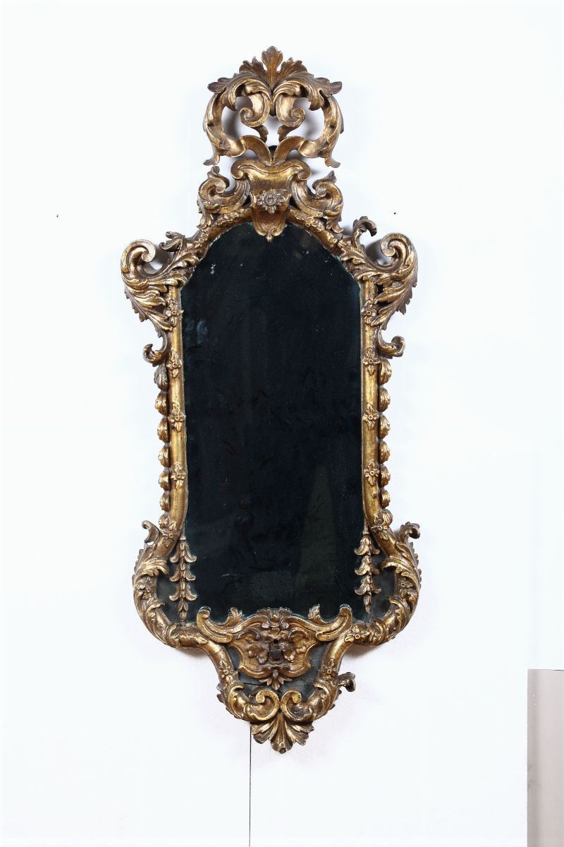 Coppia di specchiere in legno intagliato e dorato. XVIII secolo